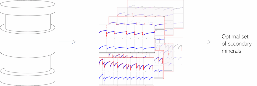 The geochemical model simulates the interactions between water, CO₂, and minerals inside the reactor, and computes the concentration in the water phase that are measured continuously. The mismatch between observation and simulation can in theory tell us whether all chemical processes are accounted for or not. But there’s a catch: many of these processes are difficult to quantify directly. For example, as minerals dissolve, the reactive surface area—the part of the rock that interacts with water—decreases, a phenomenon for which we only have very approximative models. Here’s where machine learning comes in. By training, we can estimate the decline in reactive surface area more accurately, and untangle this process from the other chemical and physical processes that occur inside the rock bed.